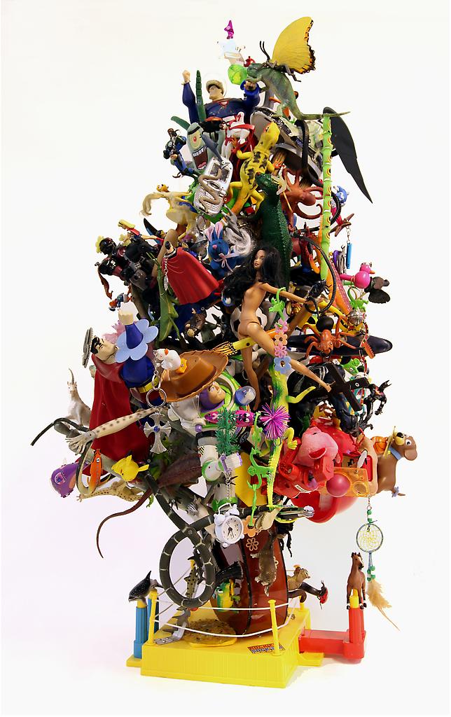 By way of Giobbi’s unique vernacular and vision, the consequence of transportation is the prime impetus of discussion. Addressed via his signature photo collage works as well as the most extensive survey of his sculptural work to date, this exhibition will feature three new mobiles constructed out of thousands of Matchbox and Hot Wheels toy cars. The cars are then formed around an armature into Möbius strips, representative of the commonplace traffic rat race we are forced to participate in with our automobiles.