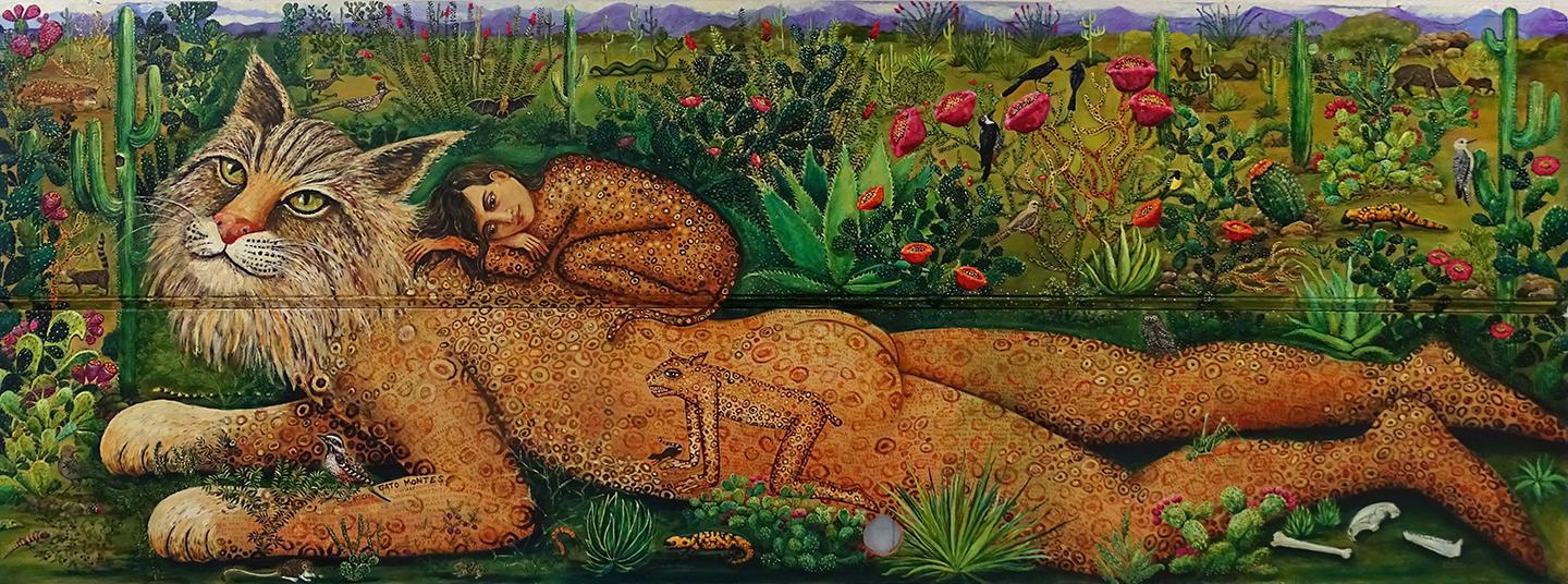 The artists exhibited in Figurative Futures includes Jason Shawn Alexander, Christian Clayton, Richard Downs, Chambliss Giobbi, Hugo Crosthwaite, Joshua Hagler, Nate Harris, Trenton Doyle Hancock, Seonna Hong, Tim Hussey, Maria Kreyn, Sophia Narrett, Joakim Ojanen, Irene Hardwicke Olivieri, Robyn O’Neil, Erik Mark Sandberg, Larry Rivers, Kristen Schiele, Allison Schulnik, Rodger Stevens, Mark Whalen, Kent Williams, Martin Wittfooth and Marco Zamora. Many of the artists have been shown in museums including but not limited to the Whitney Museum of American Art, MoMA, Smithsonian National Portrait Gallery, Laguna Art Museum, Pasadena Museum of California Art, Long Beach Museum, the American Folk Art Museum, Yokohama Art Museum, and the Jordan Schnitzer Museum of Art.