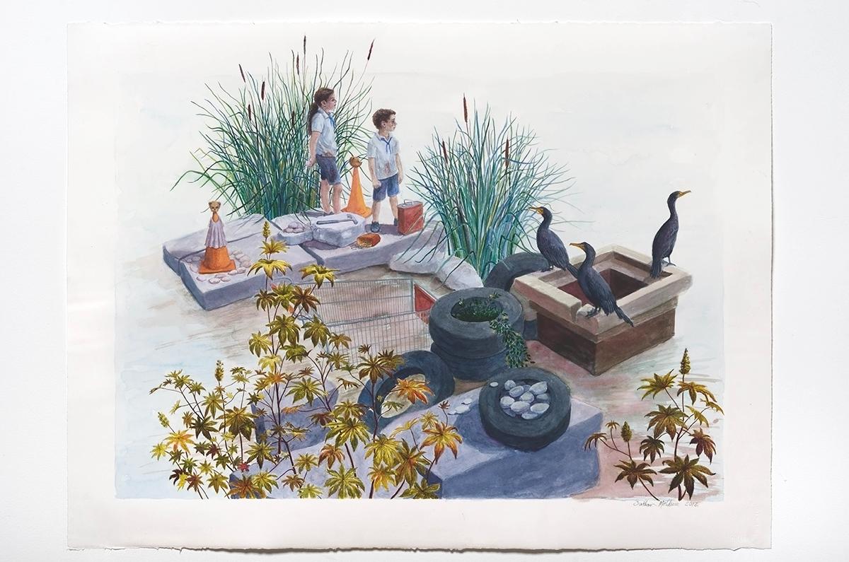 Los Angeles native and narrative painter Siobhan McClure creates expansive realms where children roam looking for safe havens. Societal pressures expose flawed systems where singular points of view are protected by societal laws while failing to offer protection to the inhabitants of her divergent worlds. Siobhan McClure is a professor at Cal State Long Beach.
