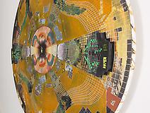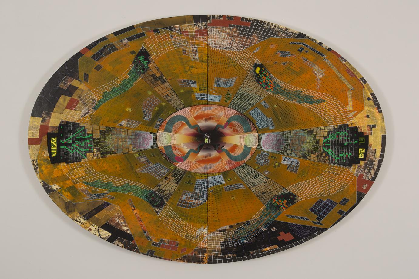 LHC Red 2013. Acrylic, pigment printout and 3D printout on canvas, 50 x 72 x 4.5 in.
