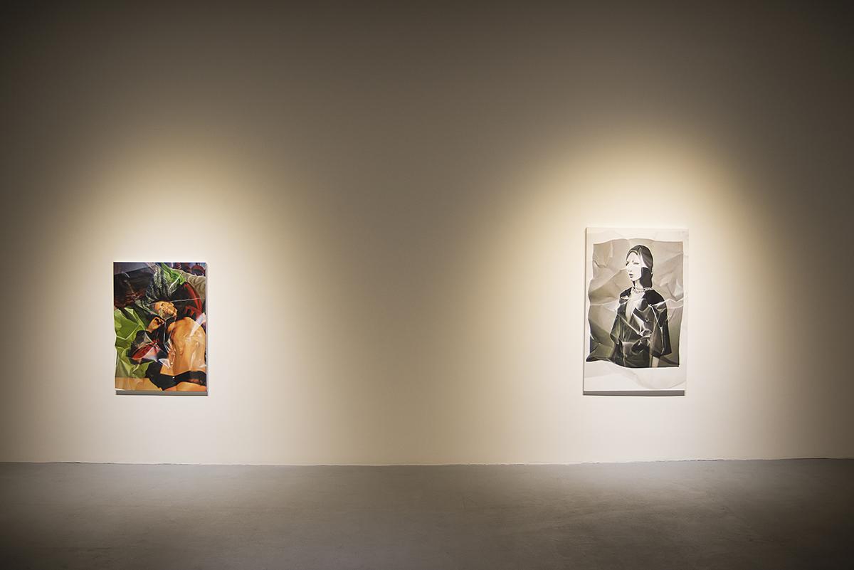 Fersini’s paintings of slightly crumpled magazine pages emphasize the highlights reflected by studio lights shining on the pages’ gloss coated finish. Creases and reflections partly obscure the women of these spreads; their half-parted lips, half-lidded eyes, and laconic poses all markedly and excessively similar. Wrinkle and highlight relegate those who once posed as goddess facsimiles to quickly fleeting images. With Fersini’s equal focus on the photographic image and its lustrous surface, the eye flits between recognizing the original photograph’s perceptual depth--what it depicts--and the image as a physical/material object. Fersini’s painstaking technique monumentalizes these images, despite the ephemeral nature of fashion.